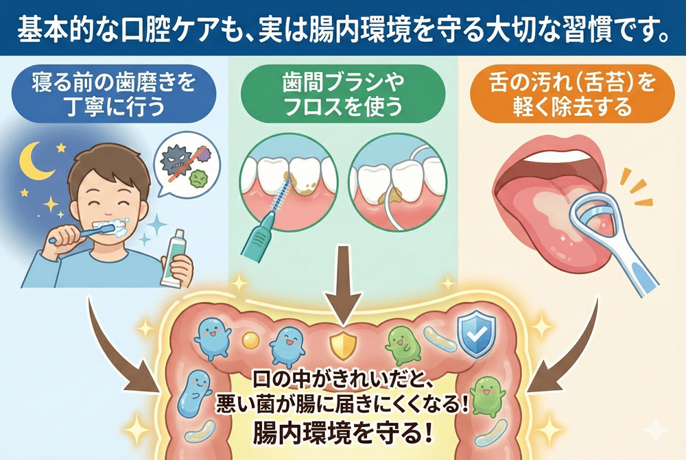 といった基本的な口腔ケアも、実は腸内環境を守る大切な習慣です。