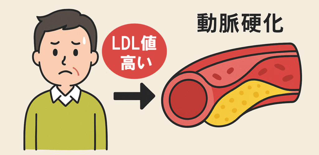 LDLコレステロール値が高い状態を放置すると、動脈硬化の原因となります。