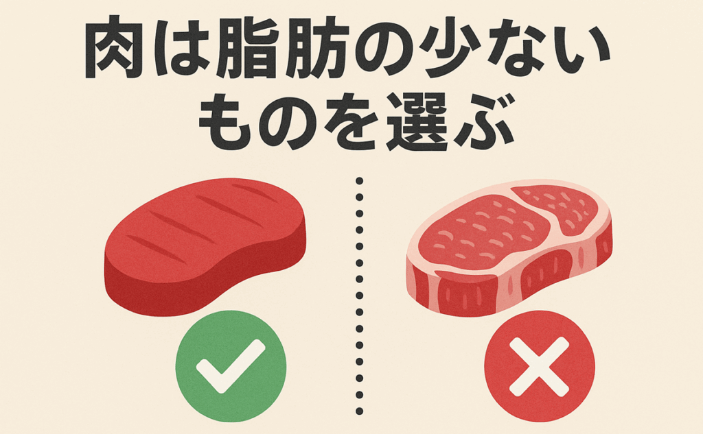 鶏肉の皮や牛・豚のバラ肉、ロース、ひき肉は脂質が多いため控えましょう。