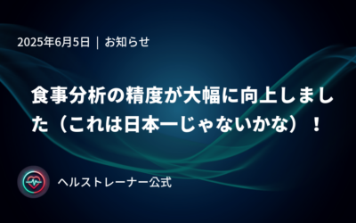 食事分析の精度が大幅に向上しました(これは日本一じゃないかな)!