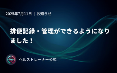 新たなアップデート情報になりますが、ヘルストレーナーアプリにて、排便の記録・管理ができるようになったことをご報告します。 最近は腸活ブームなどで、排便回数や便の状態を気にする人も多いのではないでしょうか? 日々の排便を記…