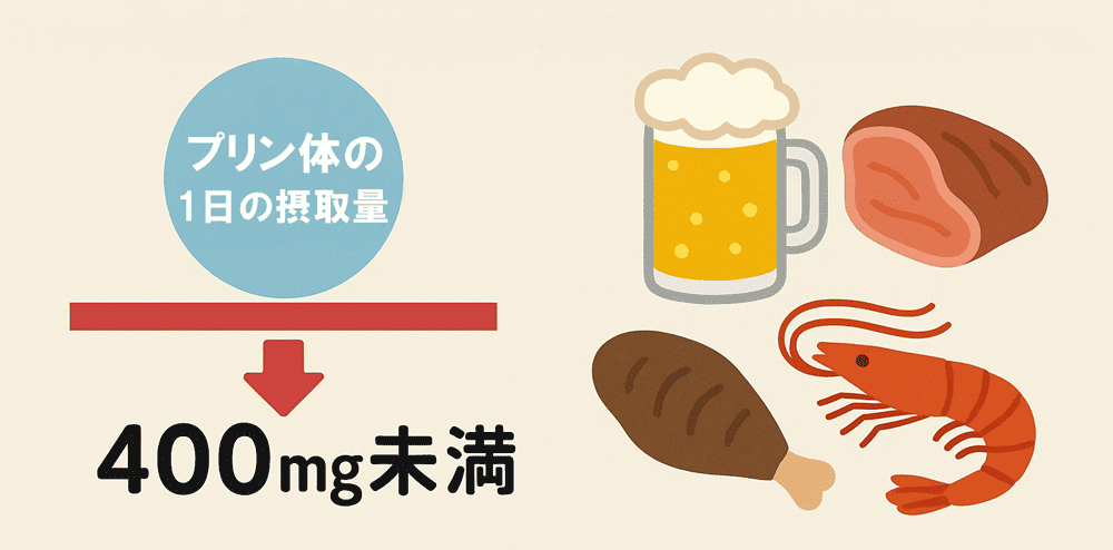 プリン体の摂取量は1日400mg未満に抑えましょう。
