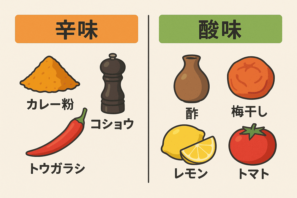 酸味:酢、梅干し、レモン、トマト