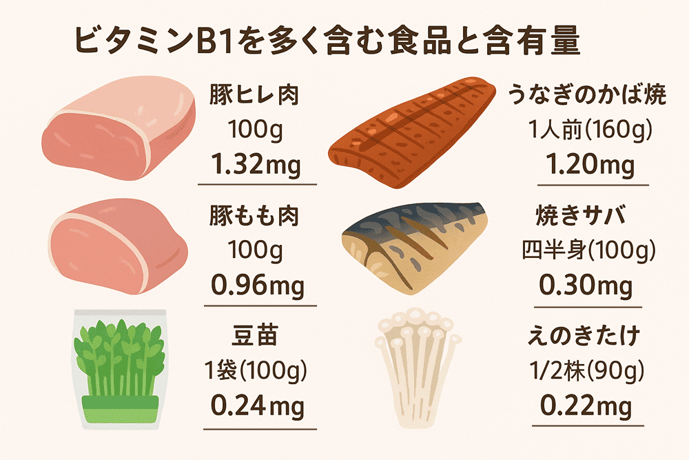 | 食品名 | 1食の目安量 | ビタミンB1含有量(mg) |