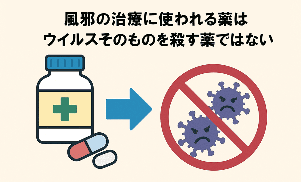 きちんと理解しておかなければならないのは、風邪の原因であるウイルスそのものを殺す薬ではないということです。