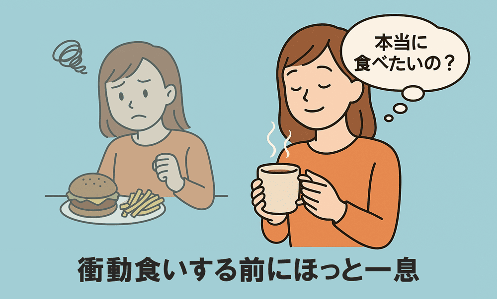 衝動食いする前にほっと一息つくことで、「本当に食べたいのか?」と落ち着いて考えることができますよ。