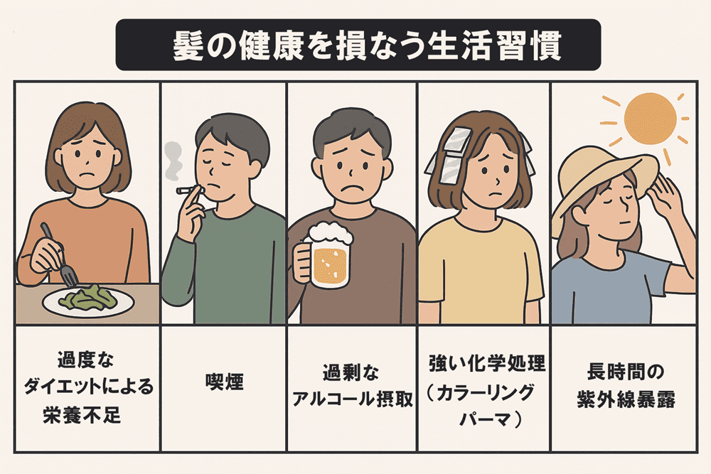 髪の健康を損なう生活習慣には、以下のようなものがあります。