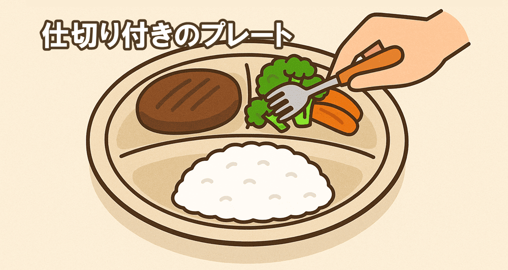 - 仕切り付きのプレートに盛り付ける
