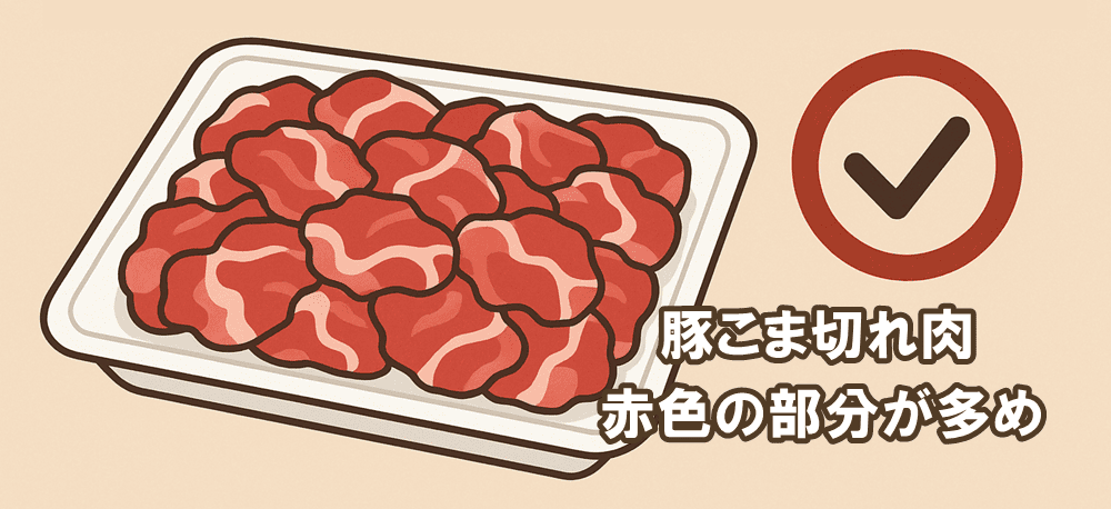 - 豚こま切れ肉は赤色の部分が多いものを選ぶ