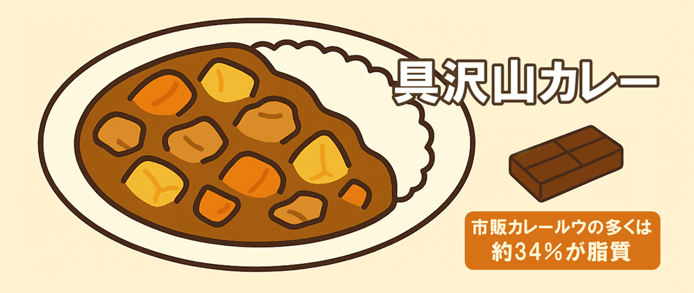 市販のカレールウの多くは、約34%が脂質でできています。