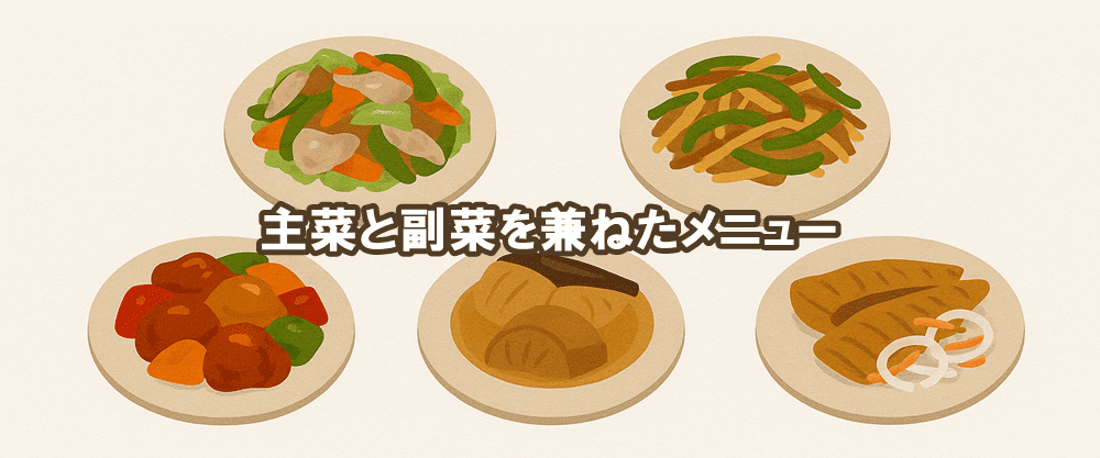 - 主菜と副菜を兼ねたメニューの頻度を増やす