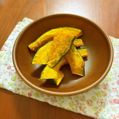 カボチャ自体の甘味と焼き目の香ばしさで、味付け無しでもおいしくいただけます。