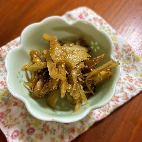 - ゴボウとまいたけのごま醤油和え