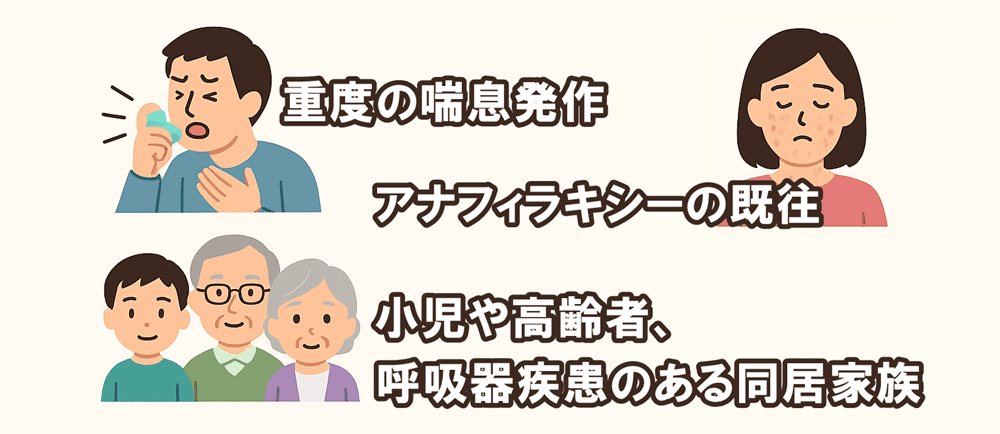 - 小児や高齢者、呼吸器疾患のある同居家族がいる