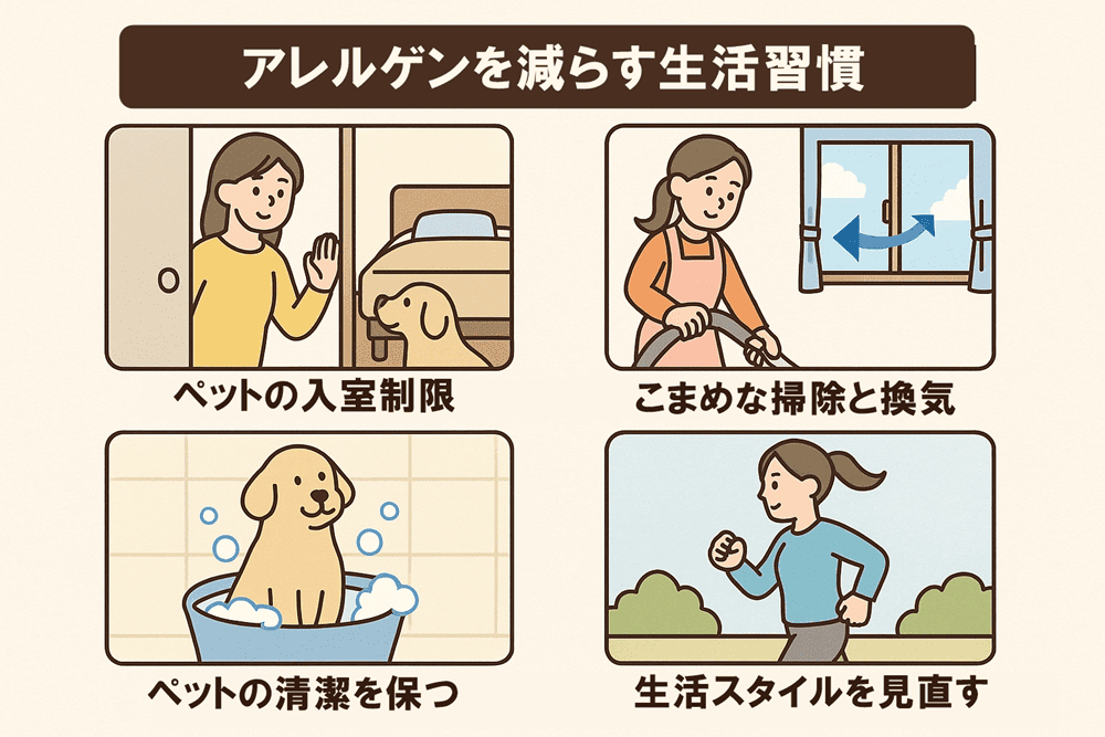アレルギーがあってもペットと暮らすには、アレルゲンをできるだけ避ける生活習慣が基本です。