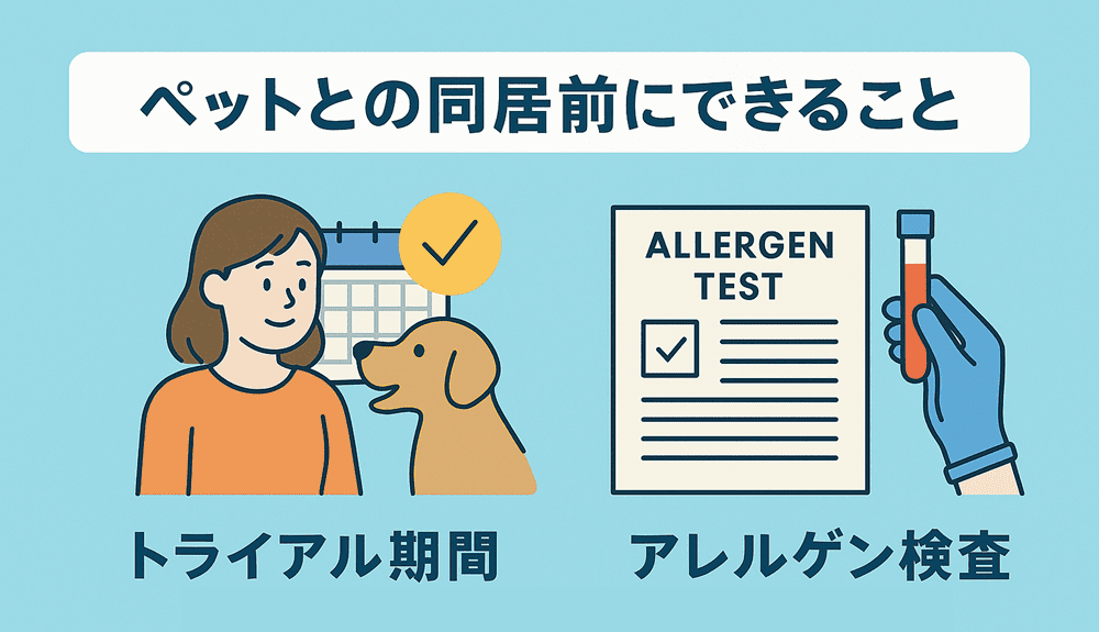 友人や保護団体から一時的にペットを預かり、1~2週間生活してみて症状の出方を確認する。