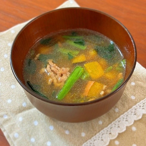 かぼちゃとほうれんそうのそぼろスープ