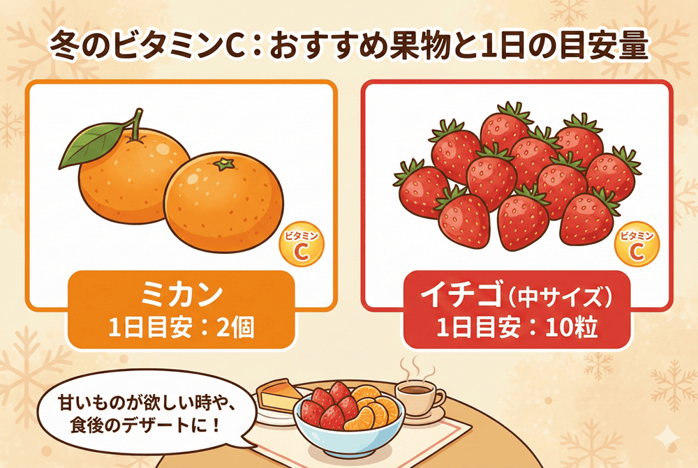 野菜を加熱して食べることが多い方には、冬が旬のイチゴとミカンがおすすめです。