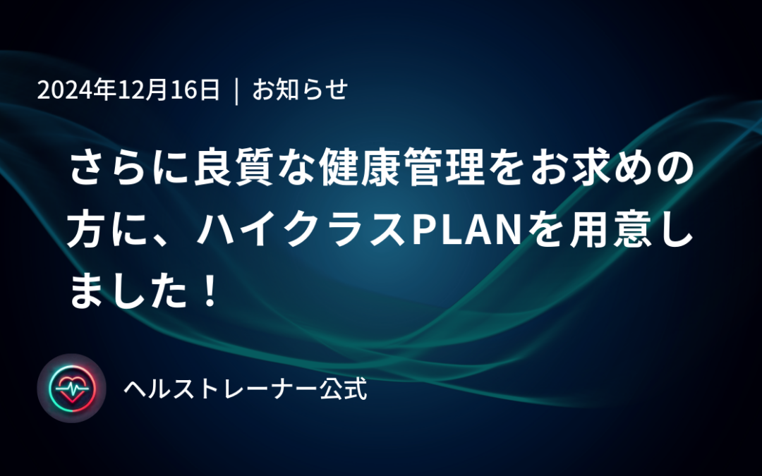 今回はさらに良質な健康管理を希望されるメンバー様限定の、特別なプラン(ハイクラスPLAN)を用意しましたので、そのお知らせです。