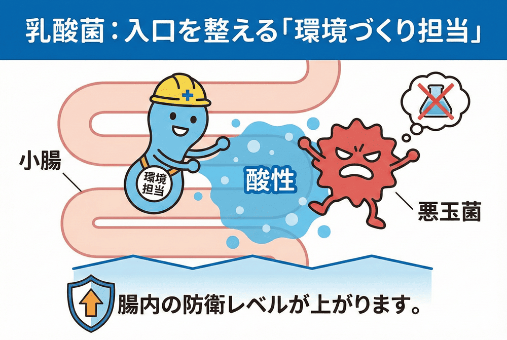 ①乳酸菌:入口を整える「環境づくり担当」