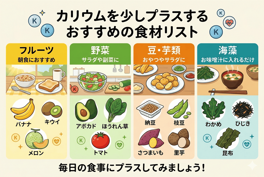 1日のうちにカリウムを少しプラスすることを意識してみましょう!