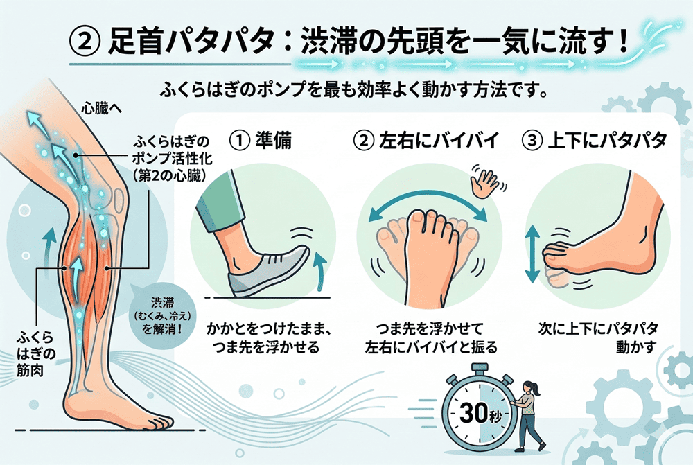 - 2-2-2. 2.足首パタパタ:渋滞の先頭を一気に流す!