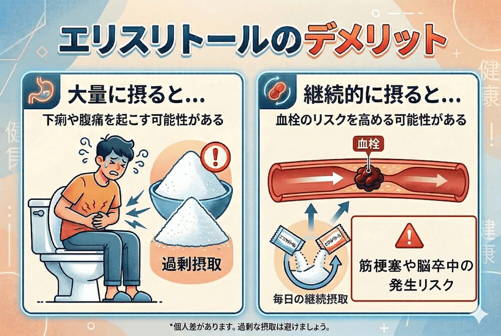 そんな魔法のような甘味料、エリスリトールにもデメリットはあります。