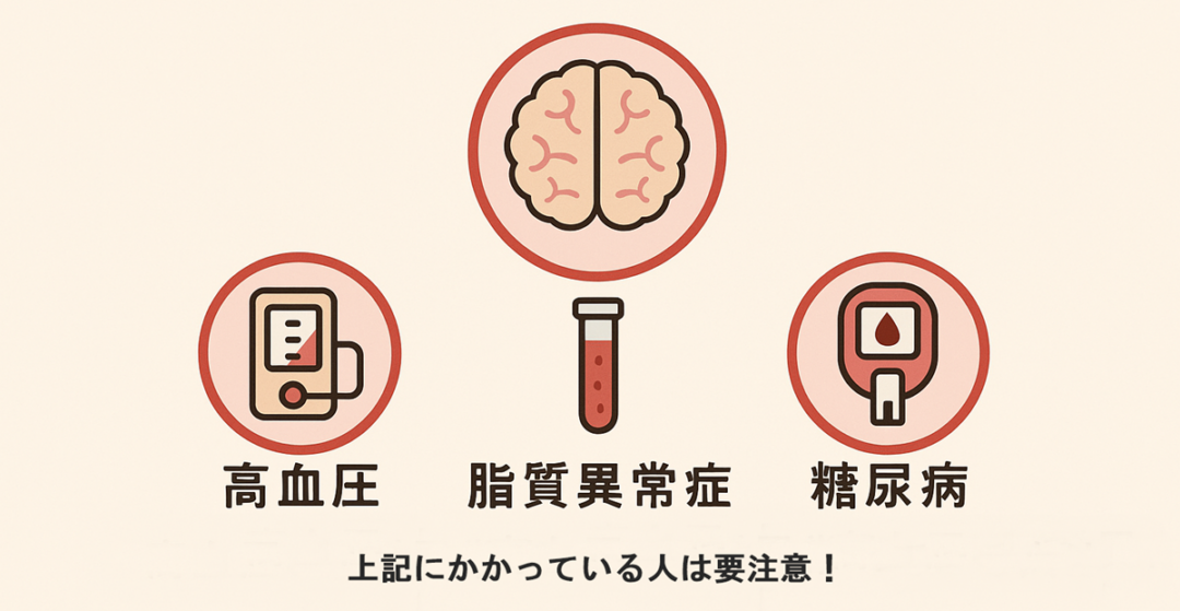 高血圧、脂質異常症、糖尿病にかかっている人はなりやすいことが分かっています。