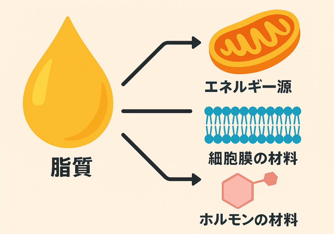 脂質はエネルギー源として使われるほか、細胞膜やホルモンの材料になる栄養素です。