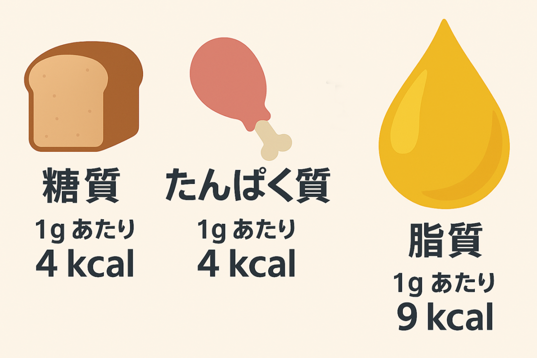 エネルギー源になる糖質とたんぱく質は1gあたり4kcalであるのに対し、脂質は1gあたり9kcalと2倍以上のエネルギーがあります。