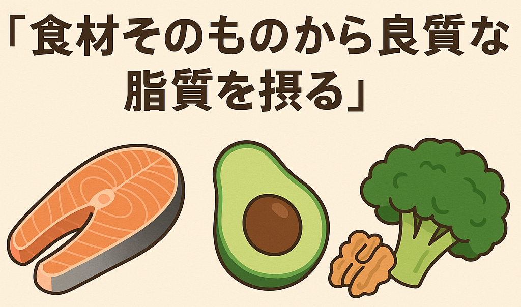 健康的な脂質の摂り方のポイントは、「食材そのものから良質な脂質を摂る」ことです。