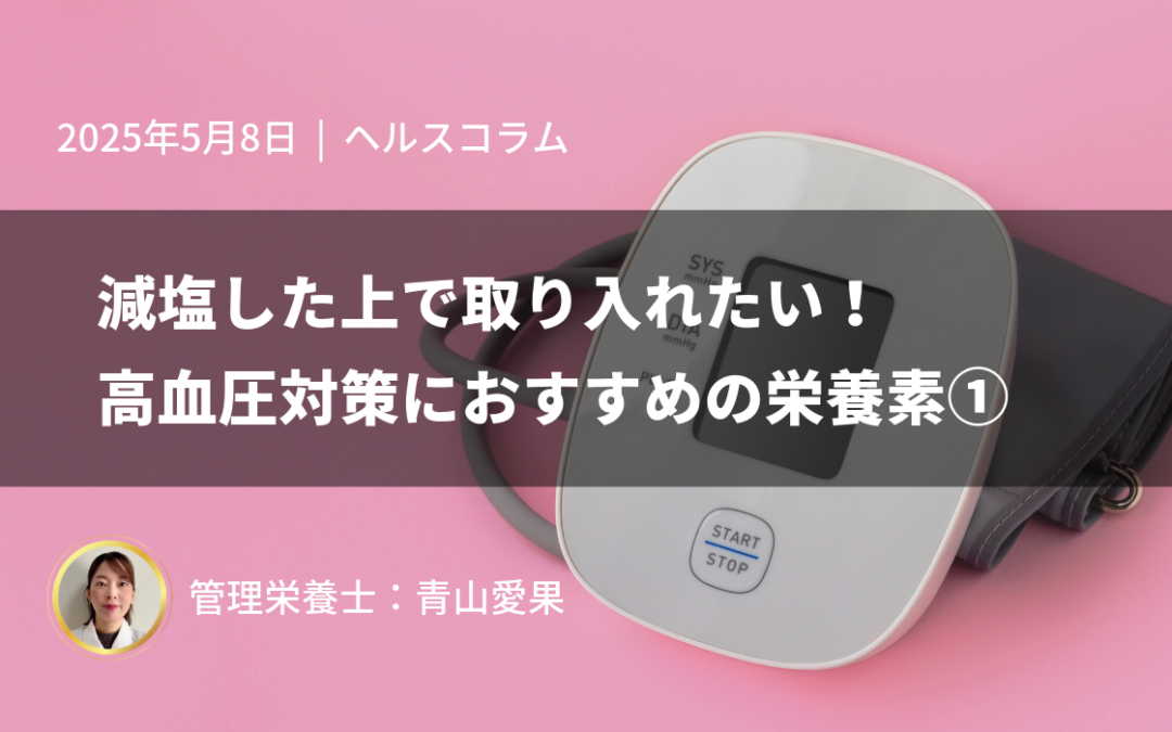 今回は、積極的に減塩に取り組んでいる方で「もっと血圧コントロールに良いものを取り入れたい」と考える方におすすめの栄養素を紹介します。